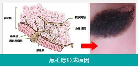 黑毛痣是因为皮肤组织中的黑色素细胞或黑色素细胞所分泌的黑色素颗粒异常增多而形成的。黑毛痣可以出生就有,也可后天发生。黑毛痣有的长在面部严重影响了爱美者的容貌和精神状态。